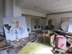 An dem Haus der Kultur ist auf der Rückseite der Bauhof. Zum 1.Mai wurden die Plakate angefertigt, die nie